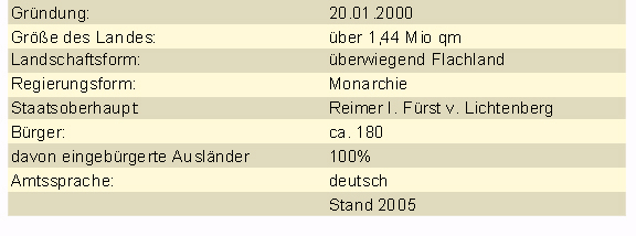 Das Fürstentum Lichtenberg ist eine konstitutionelle Monarchie, das seinen Bürgern ein humanes Miteinander sichert. Der Fürst ist Staatsoberhaupt und vertritt den Staat nach aussen. Ohne seine Unterschrift erlangt kein Gesetz Gültigkeit. Er ernennt die Staatsräte, Regierungsmitglieder und Richter. In seiner Macht steht die Begnadigung von Verurteilten und er kann Notverordnungen zum Wohle seines Staates und seiner Bürger erlassen. Militär gibt es in Lichtenberg nicht.